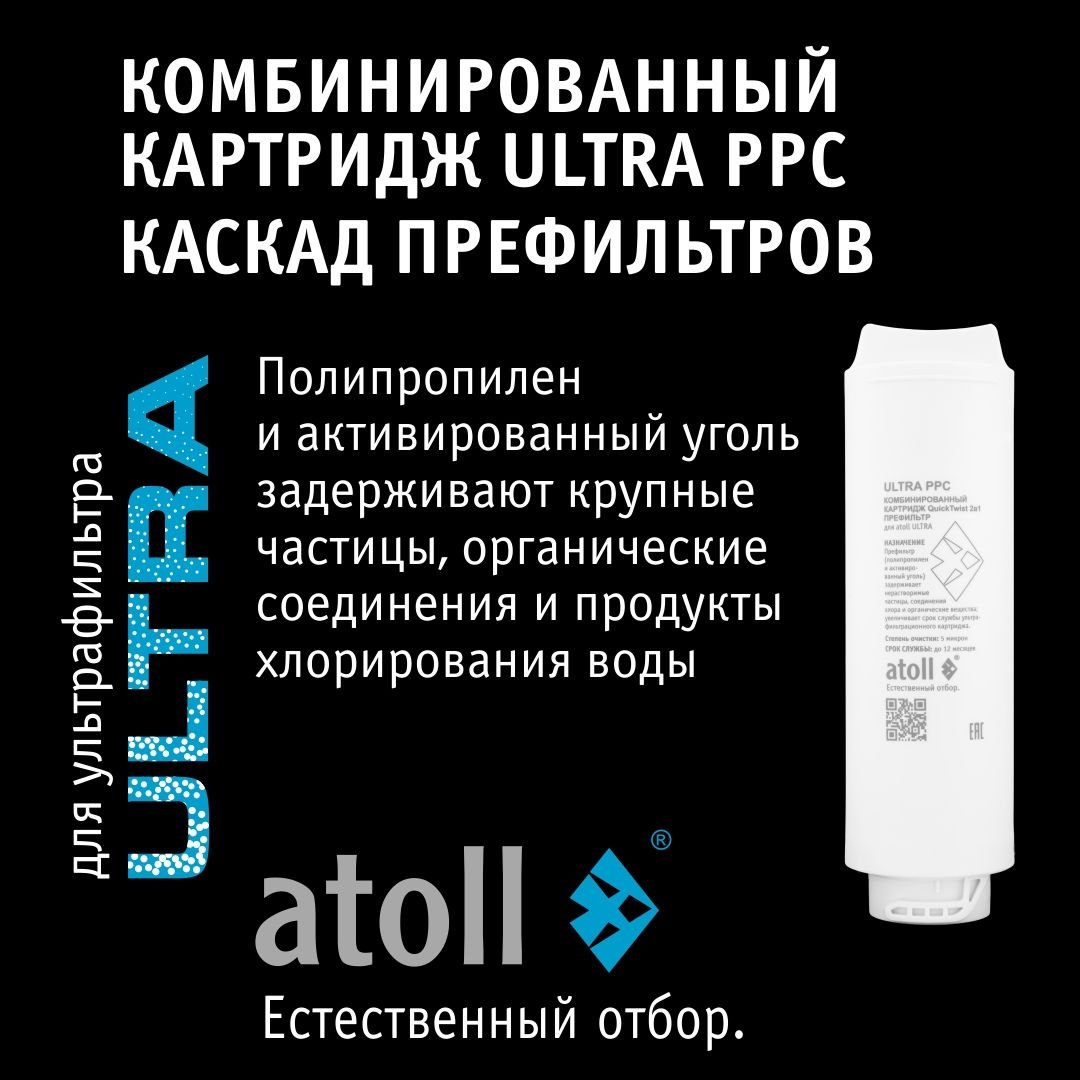 Картридж atoll ULTRA PPC каскад префильтров — полипропилен и активированный уголь — задерживает нерастворимые частицы, соединения хлора и органические вещества/